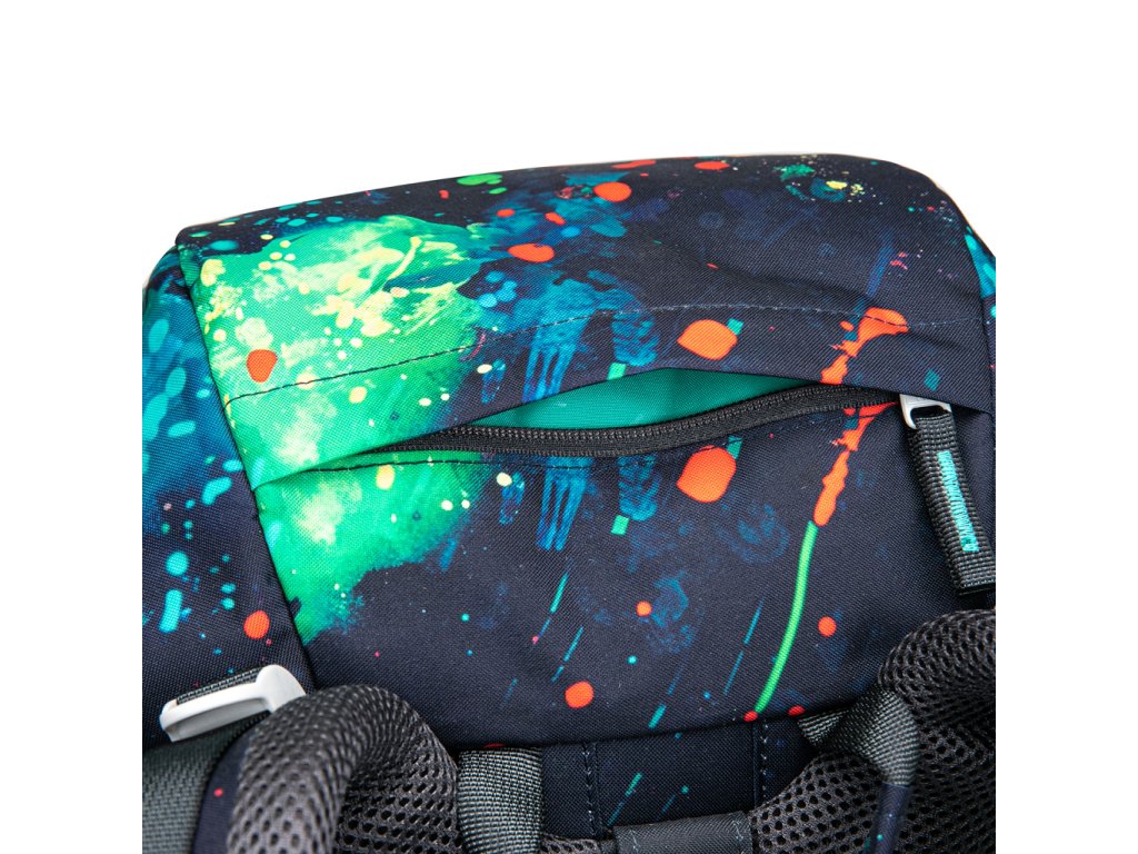 • Víko batohu je vybaveno praktickou kapsou na zip a intuitivním magnetickým zapínáním, které se samo zacvakne po přiklopení. Otevírání i zavírání je tak snadné, že jej bez problémů zvládne i prvňáček.