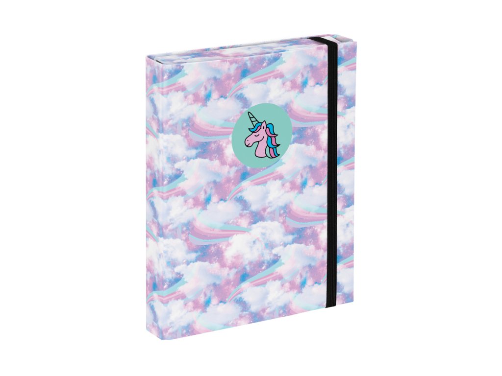 Pevné lakované desky s motivem romantického nebe plného duhy bezpečně ochrání sešity před zohýbanými rohy. Mají formát A5 a jsou velmi pevné díky lakovanému povrchu.