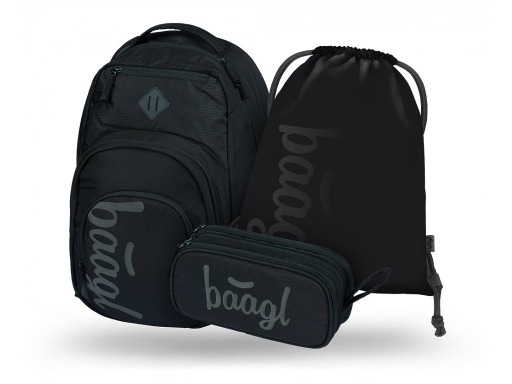 BAAGL 3 SET Coolmate Black: batoh, penál, sáček