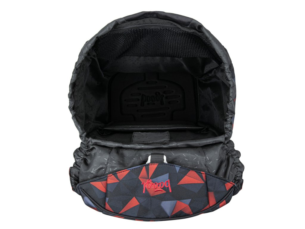 • Vnitřní prostor nabízí hlavní komoru s přehledným organizérem a lehké plastové desky pro ochranu sešitů, které kopírují tvar zadní kapsy.