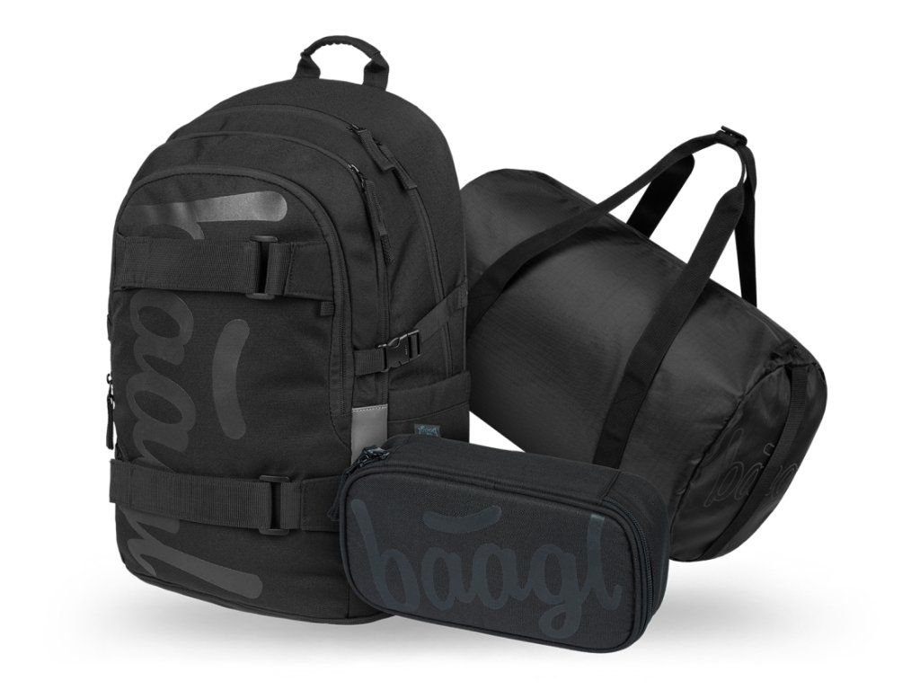 BAAGL SET 3 Skate Uni černá: batoh, penál, sportovní taška