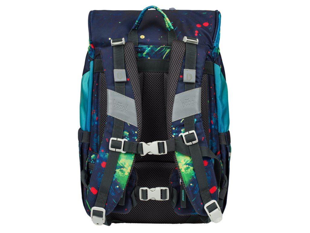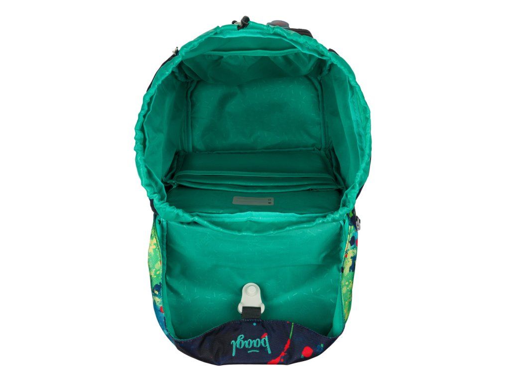 • Jednokomorové vnitřní uspořádání s kapsou a gumičkou pro uchycení desek na zádové straně slouží ke snadné organizaci všech školních pomůcek.