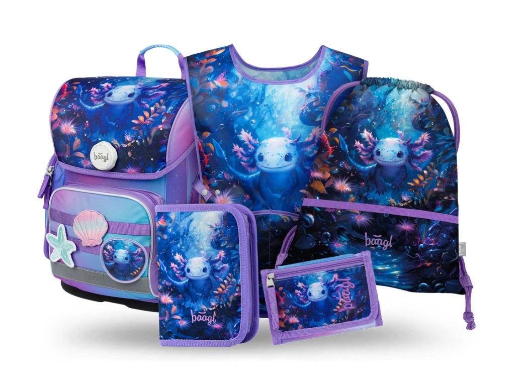 BAAGL SET 5 Ergo Axolotl: aktovka, penál, sáček, zástěra, peněženka
