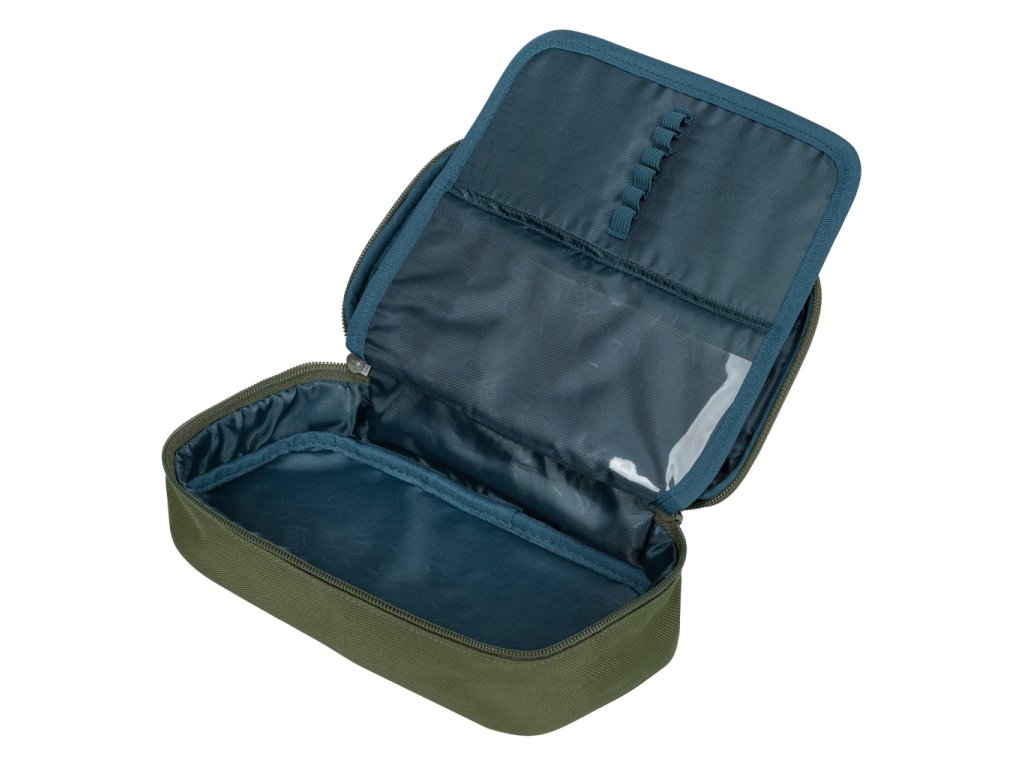 • Kompaktní penál na zip s prostornou hlavní komorou a dvojitou výklopnou chlopní nabízí dostatek prostoru pro psací potřeby i drobnosti.
