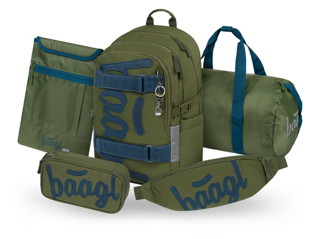 BAAGL SET 5 Skate Olive: batoh, penál, sportovní taška, ledvinka, obal na notebook GRS