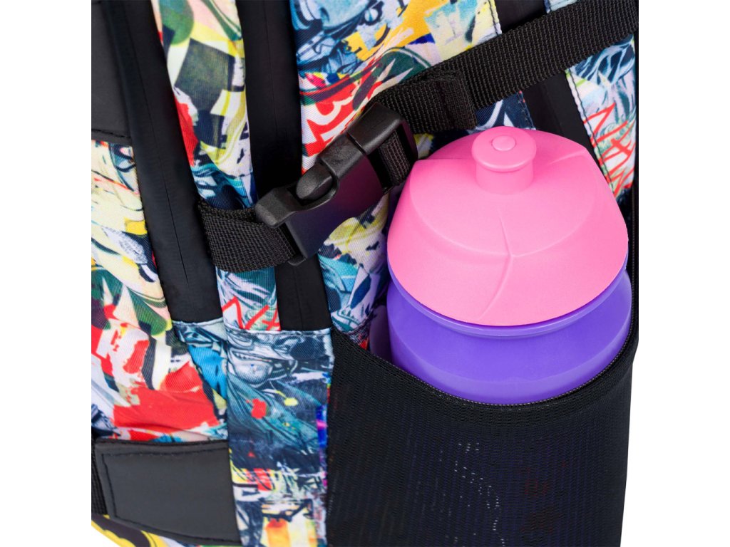 • Boční kapsy z pevné síťoviny, které jsou vhodné pro jednu z našich láhví na pití.