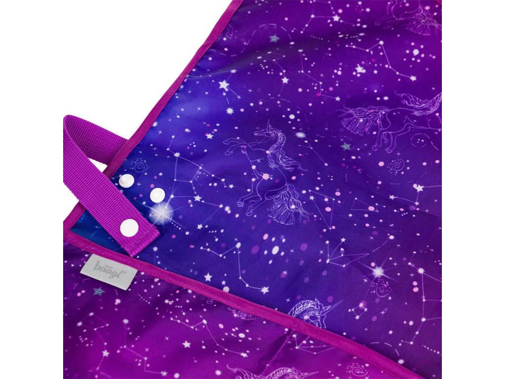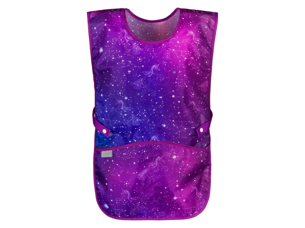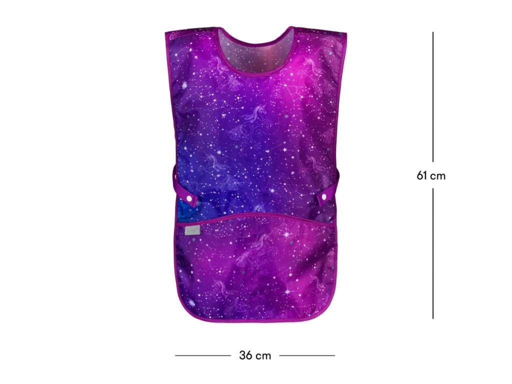 Zástěrka pro romantické výtvarnice s motivem souhvězdí jednorožce na hvězdné obloze. Nový střih a zapínání na patentky jsou pro děti jednoduché na manipulaci.