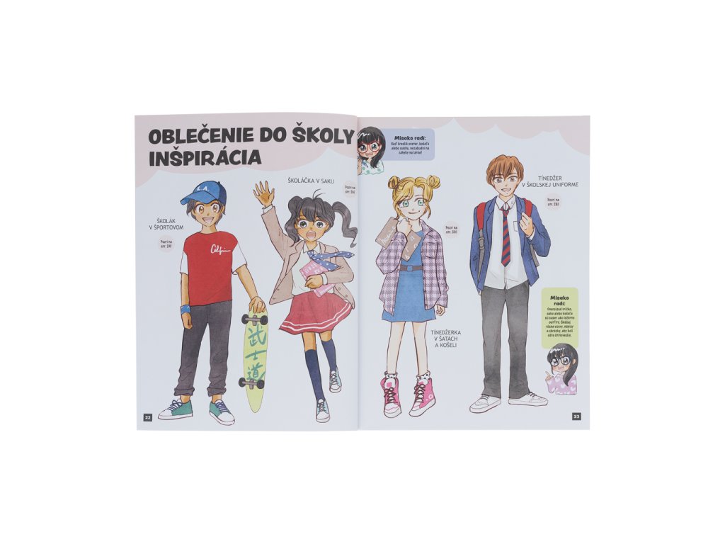 Tahle knížka se hodí každému, kdo miluje kawaii (což je japonský výraz pro něco roztomilého) obrázky a chce se naučit tvořit ve stylu manga a anime. Povede vás pěkně krok za krokem a vy se díky ní naučíte kreslit oblečení a doplňky pro manga postavičky, dozvíte se, jak tvořit různé styly oblékání, účesy, dynamické pózy, a mnoho dalších tipů. Otevře se vám celý nový kreativní svět! Srozumitelné praktické rady a návody udělají z vašeho učení zážitek. Uvidíte, že s každým zvládnutým obrázkem poroste vaše kreslířské umění i sebevědomí.