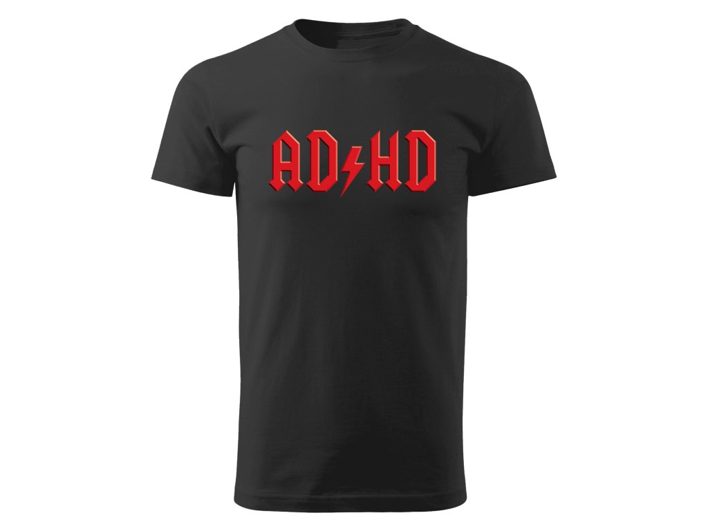 Vtipné bavlněné tričko s parodovaným logem legendární australské rockové skupiny AC/DC v podobě názvu psychické nemoci ADHD.