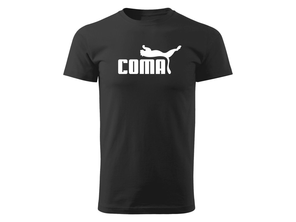 Vtipné bavlněné tričko s parodovaným logem slavné oděvní značky Puma.