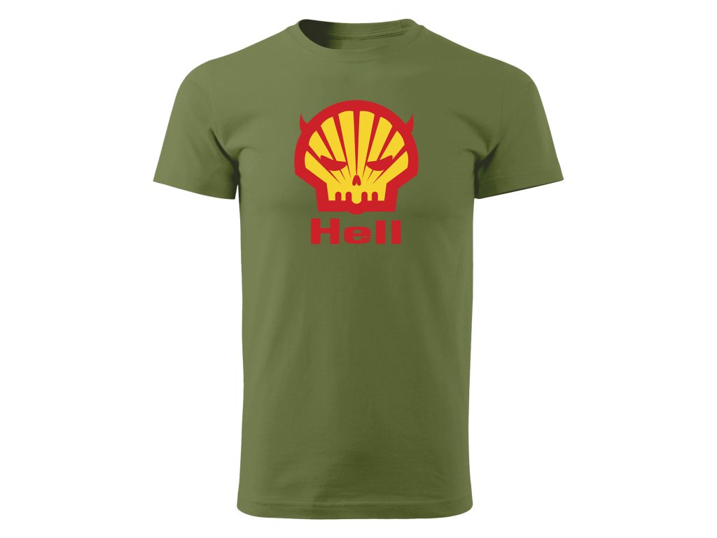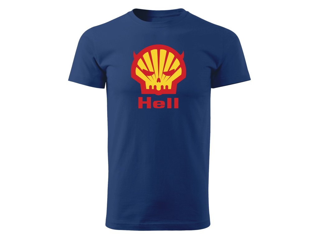 Vtipné bavlněné tričko s parodovaným logem slavné petrochemické značky Shell.