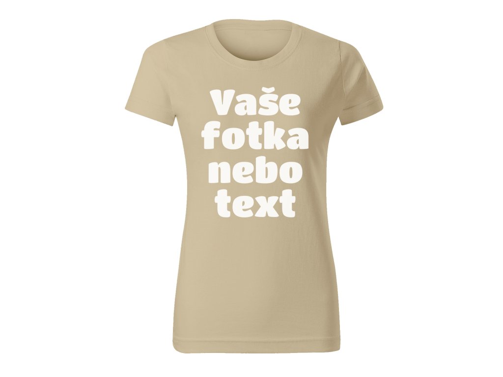 Pískové bavlněné tričko na který vám natiskneme vlastní fotku, text či obrázek.