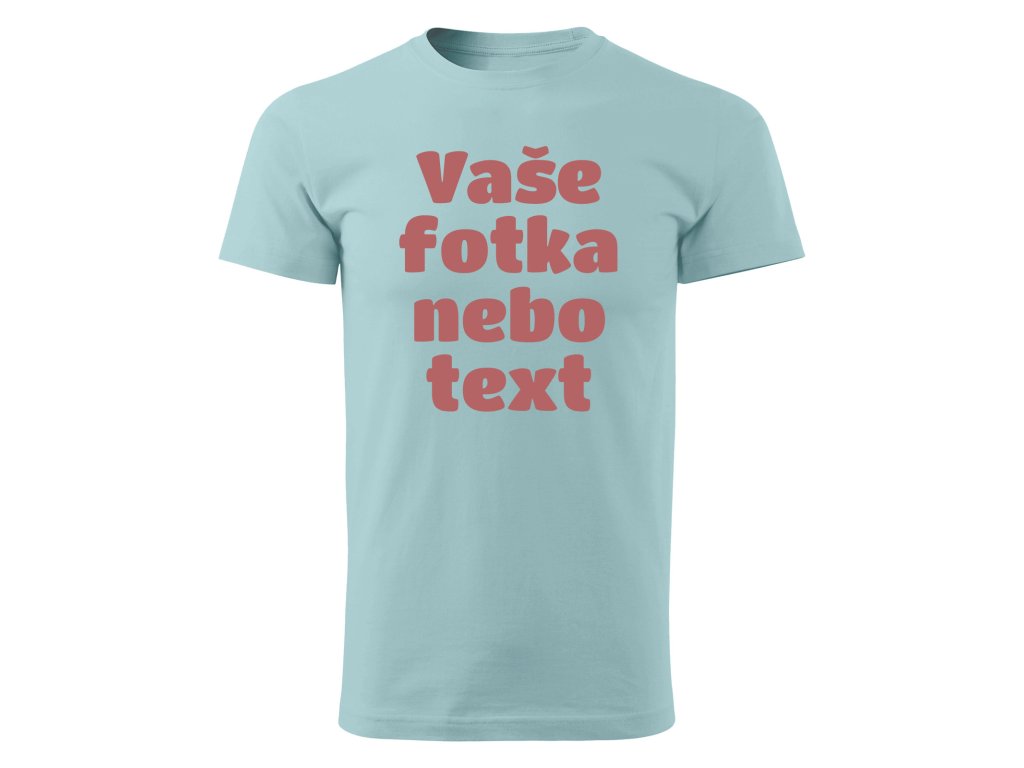 Bavlněné tričko barvy v odstínu nebeské modři na který vám natiskneme vlastní fotku, text či obrázek.