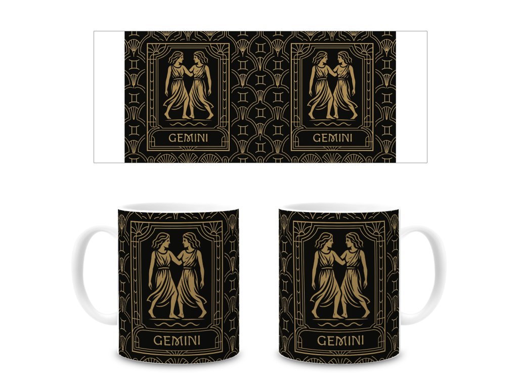 Atraktivní keramický hrnek ve stylu Artdeco ze série Zvěrokruhu a motivem znamení Blížence.
